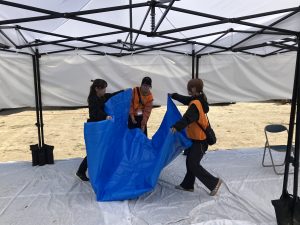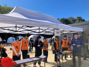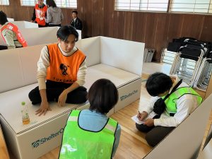 学生ボランティアは、ダンボールベッドの組み立てや防災食の配布、被災者役となり運営所の方からカウンセリングを受けたり等、実際に災害が起きたと想定しての動きに参加しました。