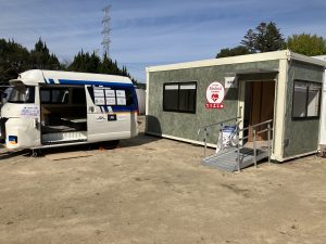 成人男性二人で90分ほどで組み立てができるもので、冷暖房も完備。