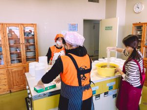 こどもたちが午前中学んでいる間、給食の時間に間に合うように作っていきました。
