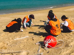 波打ち際には近づかないように、等、管理センターのスタッフさんから指導を受けて、活動スタート。