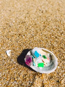 じっくりと見つめていると、カラフルなプラスチックの破片を見つけます。