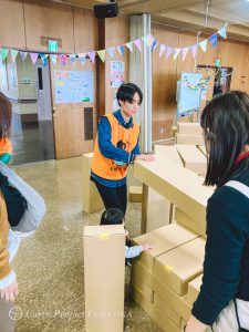たくさんの大きな段ボールで遊べる、デカ段ボールアソビスペースの運営♪