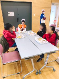 こどもたちが食堂へ来てくれたら、配膳をして食事をする準備。