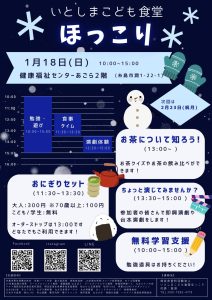 1/18(日)糸島こども食堂ボランティアに参加を申し込みます。